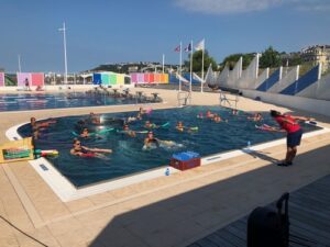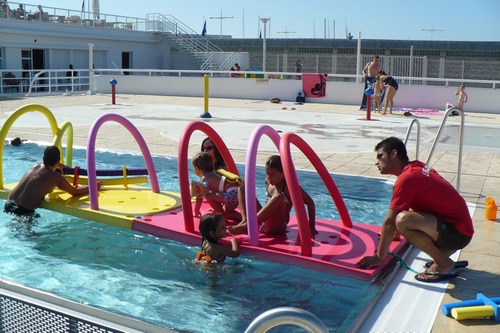 Et bien évidemment aussi, 2 lignes d’eau en permanence pour nager, espace de balnéothérapie, vélo aquatique, jeux pour enfants, paddles, ping-pong, solarium, transats avec parasols, volleyball, découverte de nos sections sportives, fitness, tapis de course, vélos elliptiques et notre Club House pour petite ou grande faim.