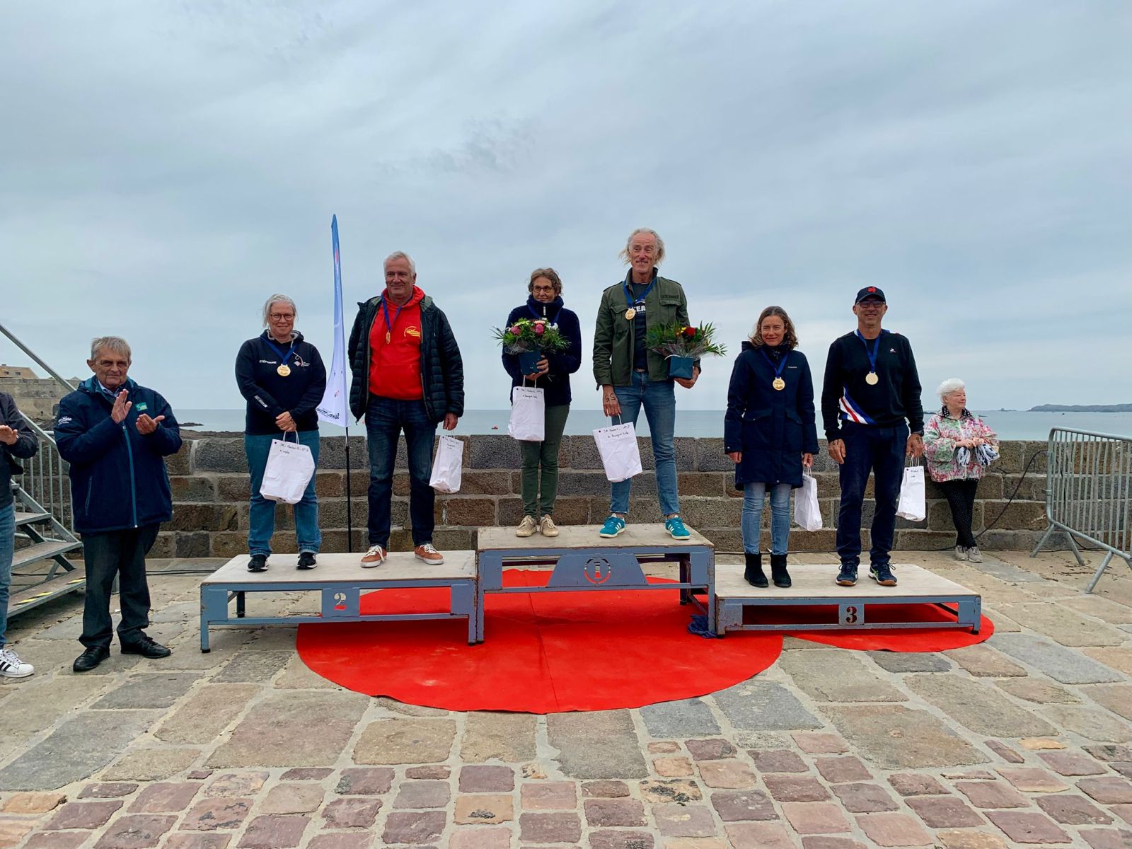 Nos 5 maîtres (Garreau Emmanuel, Schmidbauer Tobias, Soudry Florence, Olivier Pierre et Stéphanie Lecanu) ont pris part au 3 km en mer d’huile.